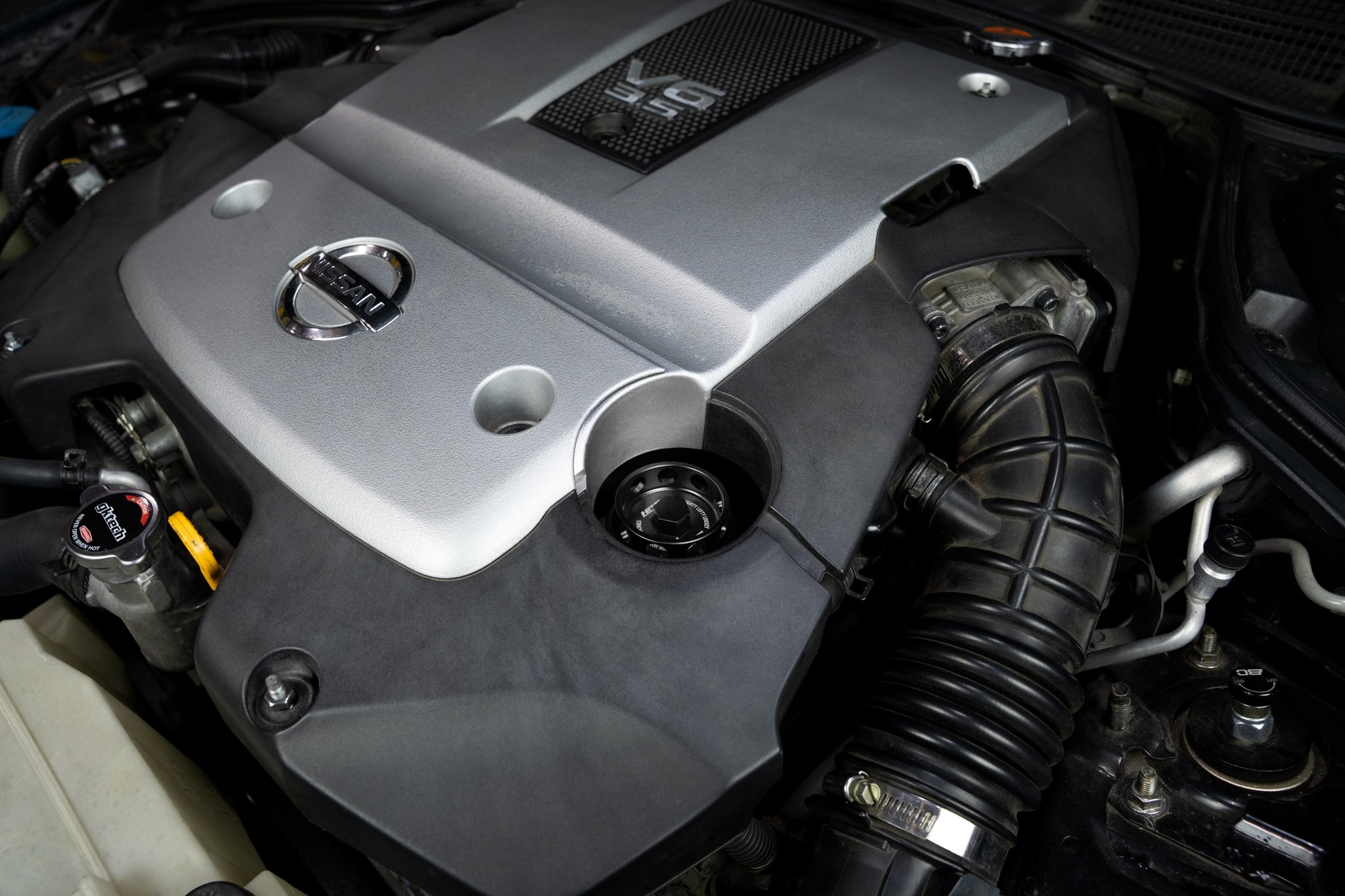 • CNC billet aluminum construction offers unmatched strength superior heat resistance and a sharp high-performance engine bay aesthetic compared to plastic.