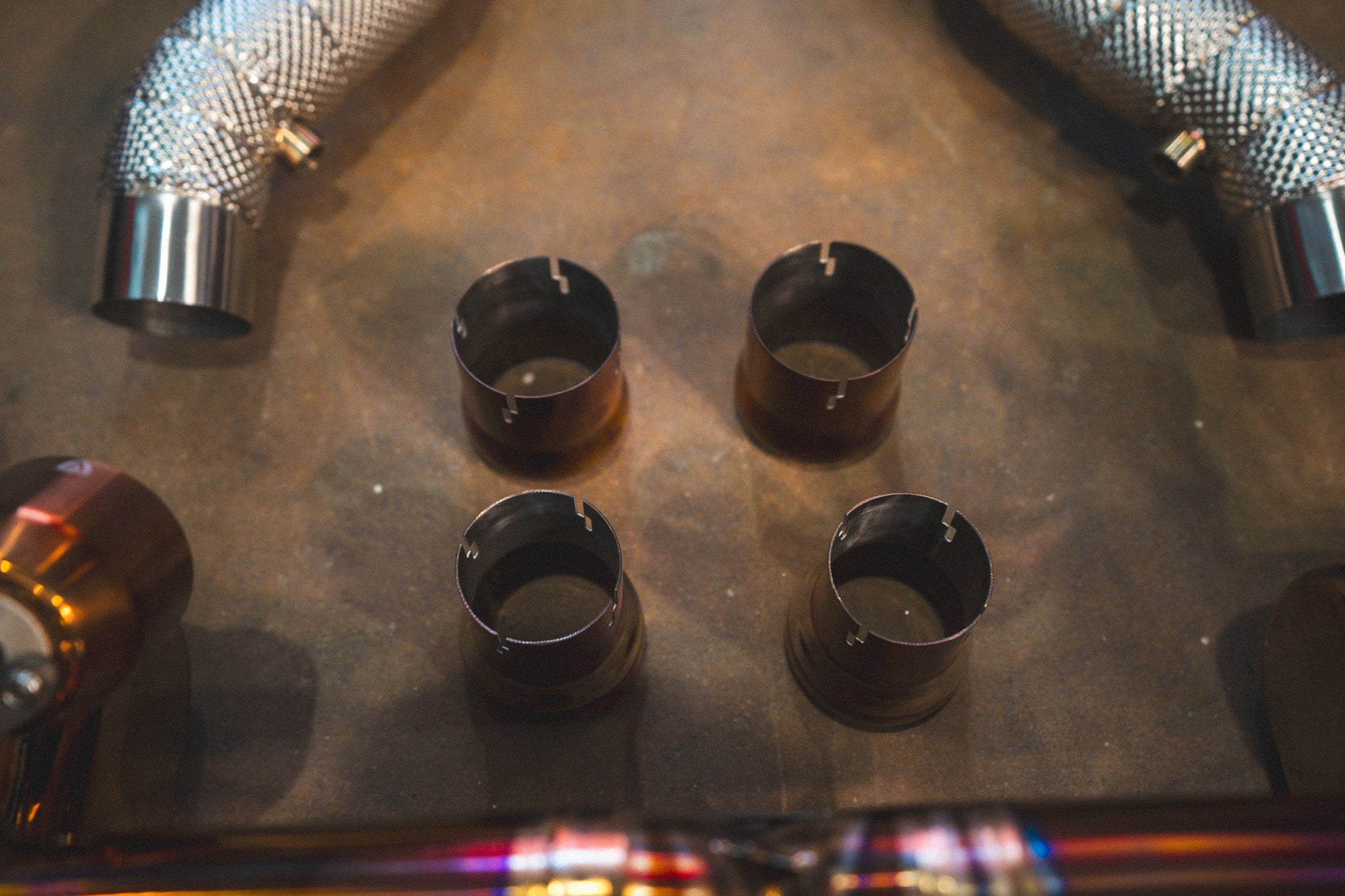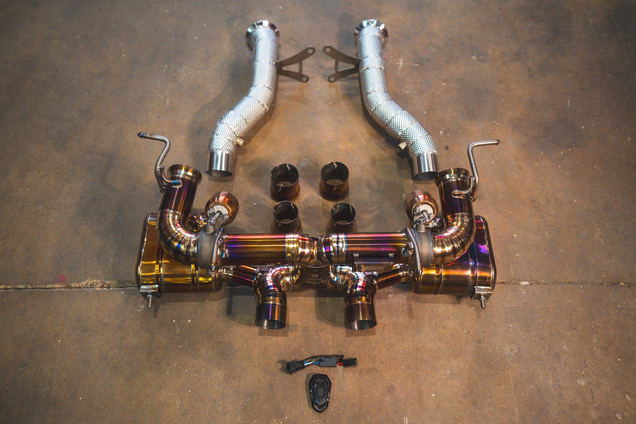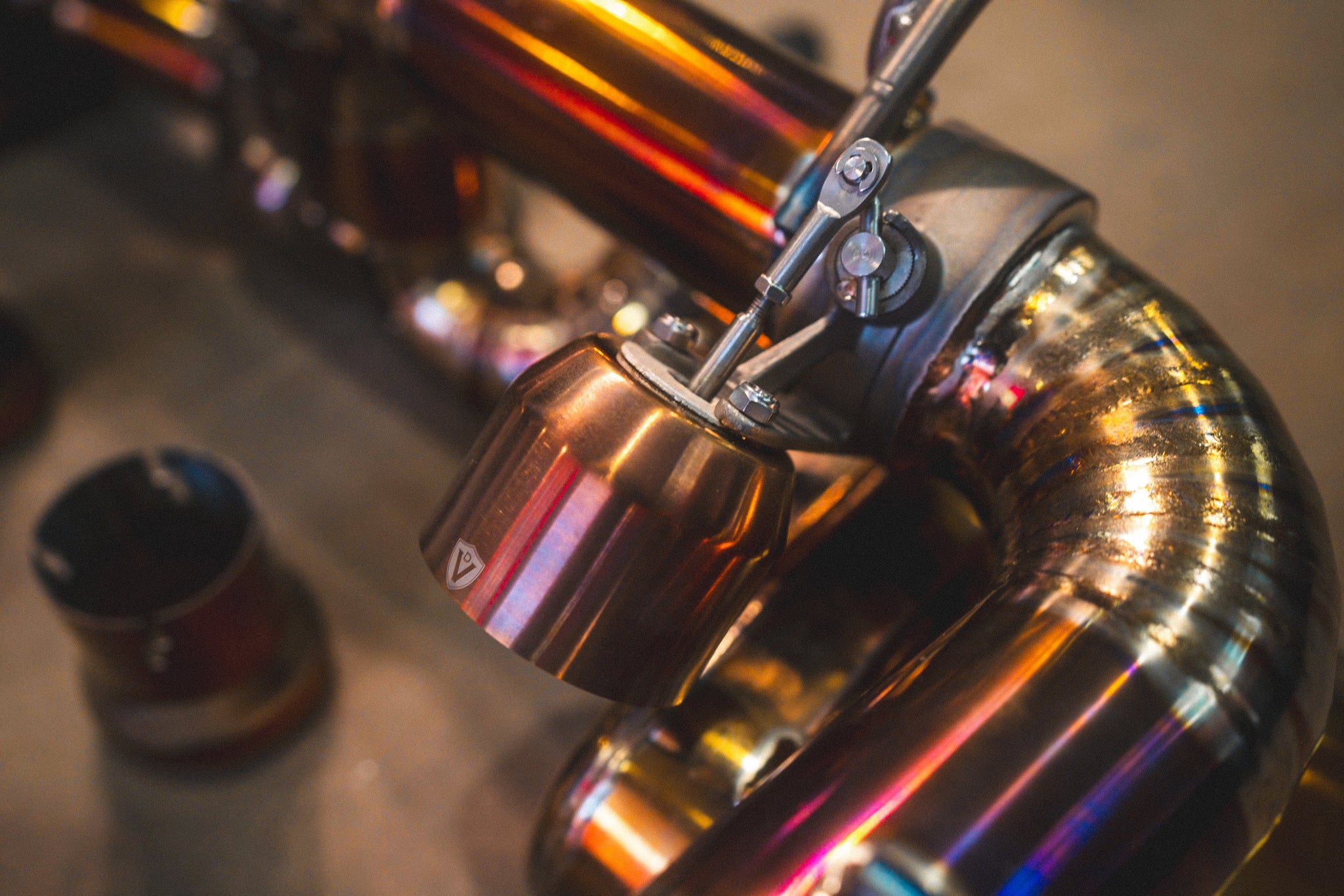 The 4.5 Liter Ferrari V8 is considered by many to be one of the best engines to come out of Modena in the last decade. Sadly, like all modern cars, the 458 is held back from the factory, but it should not stay that way. Welcome to the Ferrari 458 exhaust suite by Valvetronic Designs. Measuring 2.75 inches in diameter, this valved system will give your 458 that high pitched F1 wail similar to the Ferrari challenge cars. Featuring our traditional vacuum valves, this system can be tied into the factory exhaust valve control or run on a separate for 100% control. From the factory, the exhaust valves open at 3500 RPM regardless if you are in Sport or Race. The exhaust also utilizes a center X-pipe right at the exhaust tips to give you that F1 wail. The system is constructed of Grade 5 Titanium which undergoes our anodizing process resulting in our renowned gold/purple finish.