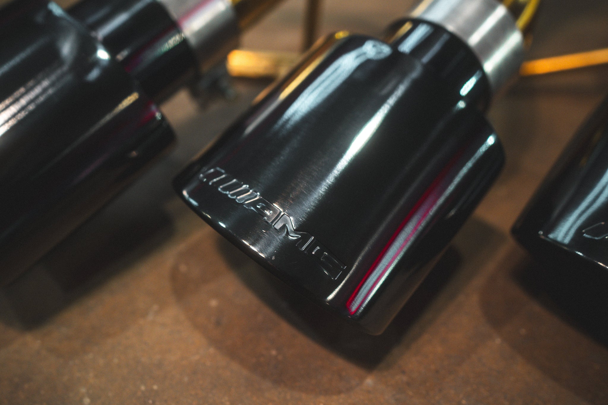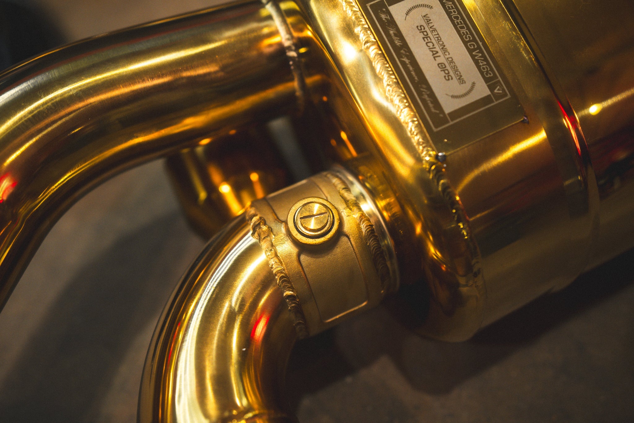 Welcome to a sound revelation for the W463 G63 AMG. This system the latest technologies to give the 5.5L TwinTurbo V8 the best sound characteristic possible. Constructed of Anodized Gold T304 stainless steel, this full exhaust system gives your G63 the rawest and most aggressive sound experience. The system runs 2.75 inches all the way back. With a sound characteristic similar to the M156 6.2 V8 this is a truly aggressive setup. This system is an absolute must-have for any G63 owner who wants to take their AMG experience to the next level. Combined with the beautiful carbon fiber exhaust tips, this setup is truly a work of art.