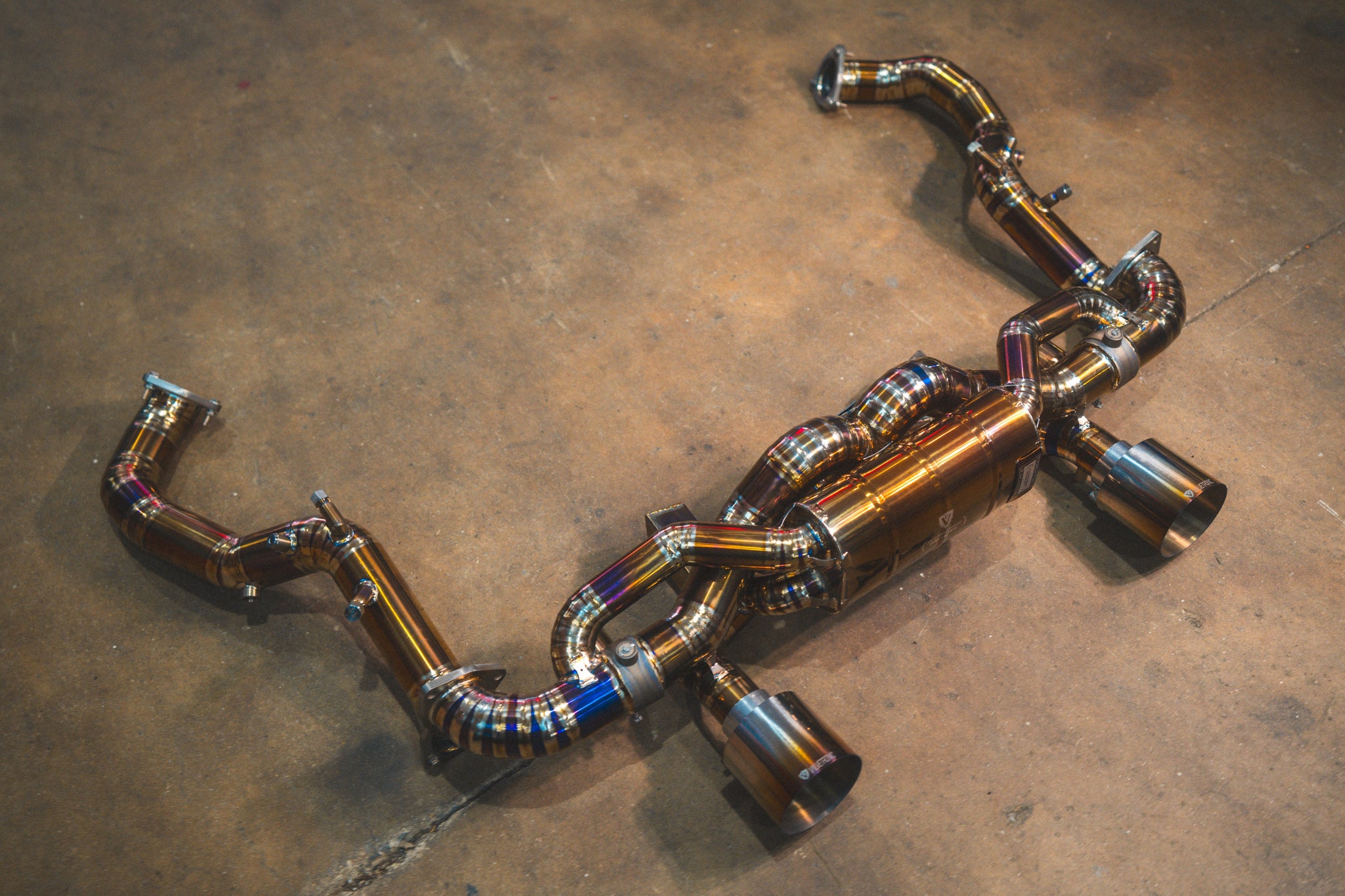 Crafted from premium-grade titanium, this exhaust system embodies the perfect balance of lightweight construction and uncompromising durability. Designed to exacting specifications, each component is precision-engineered to seamlessly integrate with the GT4 RS, ensuring optimal fitment and maximum performance gains.