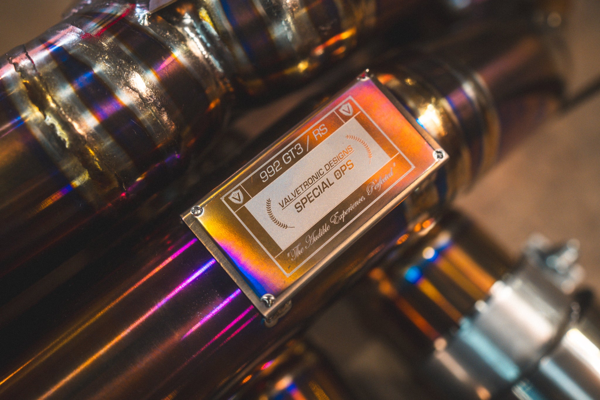 As the legend of the naturally aspirated GT3 lives on, it is our duty to ensure that these cars sing even more than factory. Welcome to the Valvetronic Designs Valved Sport Exhaust System for the 992 GT3 platform. With this new generation of GT3, the exhaust configuration changed dramatically from the earlier 997 and 991 cars. Featuring a new header flange design, this called for a complete redesign of our traditional set-up. This new configuration features electronic exhaust valves that utilize the factory exhaust valve motors, and our traditional large cross-section X pipe for that very fruity RSR sound. With the valves open, the system is designed to be as raw and engaging as possible. Perfect for improving your GT3 driving experience. With the valves closed, sound levels are minimized in order to keep neighbors happy and keep the unwanted drone frequencies away. Whether you're attacking your favorite racetrack or ripping down your favorite back road, The Valvetronic Designs sport exhaust system ensures your GT3 rewards every last rev all the way up to the 9000 RPM redline. At Valvetronic Designs, we do not compromise. Neither should you when choosing the best sounding, and most enjoyable exhaust set-up for your 992 GT3.
