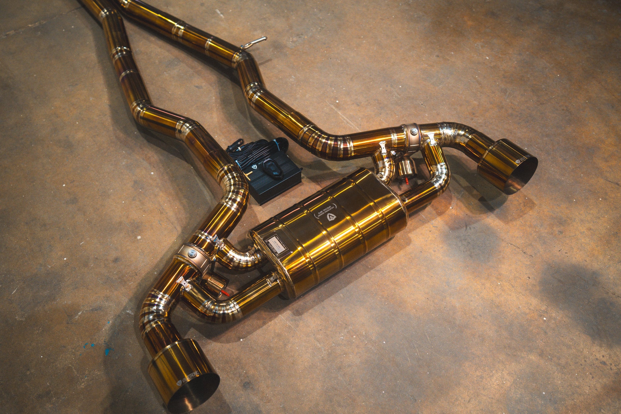 The A90 supra came in with killer looks but left us all asking ourselves how amazing it would sound with some added bite! Our full exhaust system answers this question. When operating in the valves open mode, exhaust gasses pass through the system with minimal restrictions in order to give the most raw sound experience possible. At the touch of a button, exhaust gasses are diverted through our center quad-chambered muffler to drastically lower sound output levels. Take your A90 to the next level and keep your neighbors happy as well!