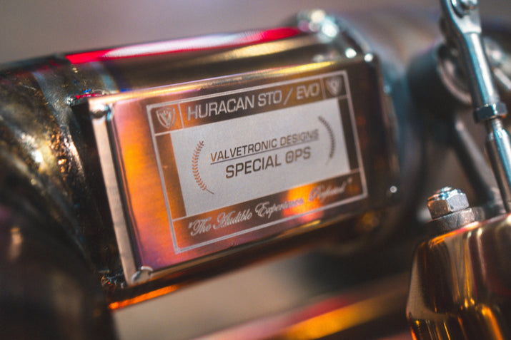 Valvetronic Designs 2021-2025 Lamborghini Huracan STO 5.2L Full Valved Exhaust System With Free Flow Headers, Grade 5 Titanium Bespoke OEM Style Valvetronic Tips (LAM.STO.VSES.FFH.2.TI)