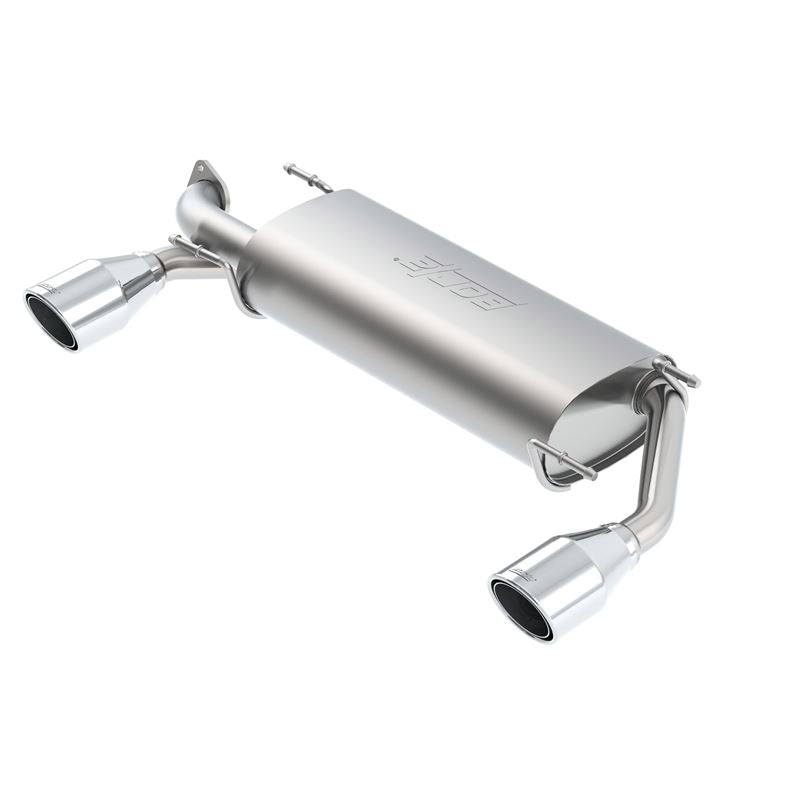 Borla Axle Back systems replace the factory rear mufflers and exhaust pipe with an improvement in overall sound & performance to your truck, SUV, or car. Welded tips are standard on most systems running gas or diesel fuels. Some of today's modern vehicles have a factory service-point in the exhaust system (flange or slip-fit) located in the exhaust tubing behind the vehicle rear axle. A Borla Axle Back performance exhaust system replaces the factory exhaust system (behind this service-point) following the same exhaust path and secured using the original vehicle hangers and rubber isolators.
