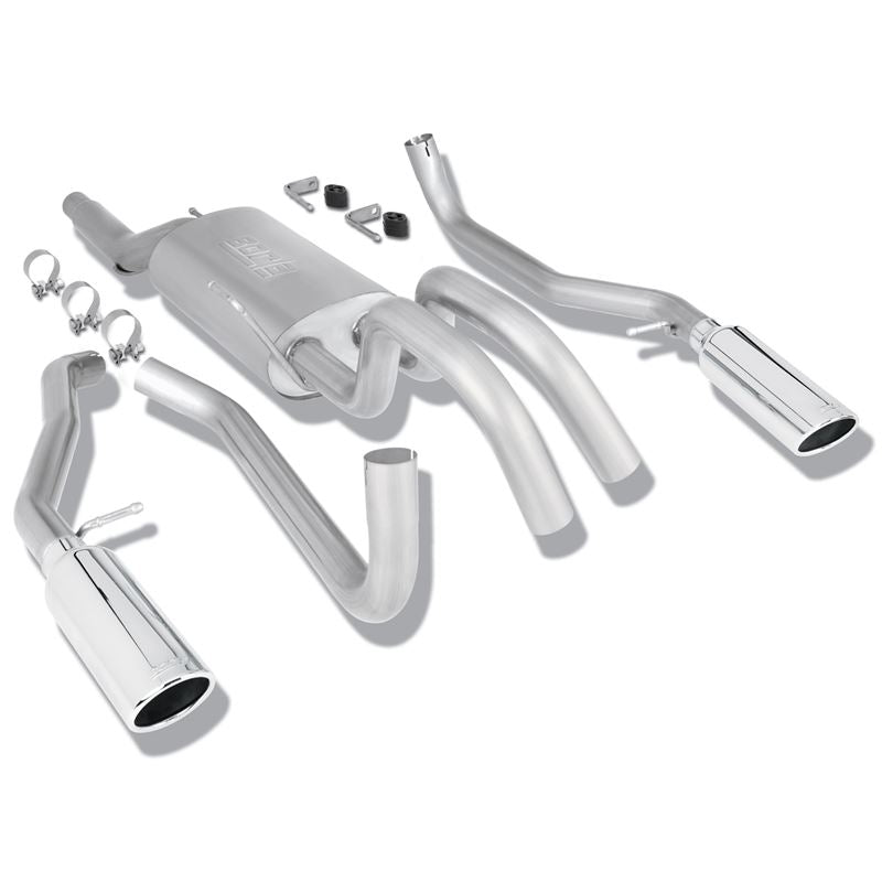 Upgrading your factory exhaust system to a Borla stainless steel performance exhaust system with a more efficient and less restrictive design can improve sound (adding more enjoyment driving your vehicle) and increase engine horsepower and torque throughout the RPM range (allowing quicker acceleration to pass a vehicle or get to highway speeds quicker). Borla offers Axle Back exhaust systems, Cat back exhaust systems, and for select Competition-Use-Only vehicles, we offer long tube headers to replace your exhaust manifold for the best performance and sound.