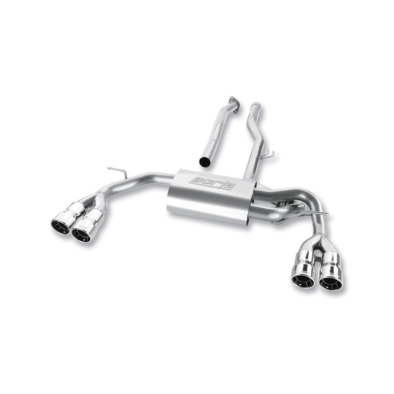 BORLA Cat-Back and Axle-Back exhaust systems feature patented straight-through and multi-core technology designed to unleash hidden horsepower. Increased exhaust velocity adds power, driving excitement, fuel economy, and the distinctive BORLA Sound of Power respected by motoring enthusiasts everywhere. Each system is built from premium T-304 stainless steel, superior to T-400 series knockoffs (such as 409), to give you the absolute best in performance and durability. Ultra-smooth mandrel bends ensure maximum flow & power, and precision computer-controlled CNC manufacturing ensures an accurate fit. Best of all, BORLA stands behind every system with a Million-Mile Warranty. Just what you'd expect from the world's most experienced (and most winning) exhaust brand.