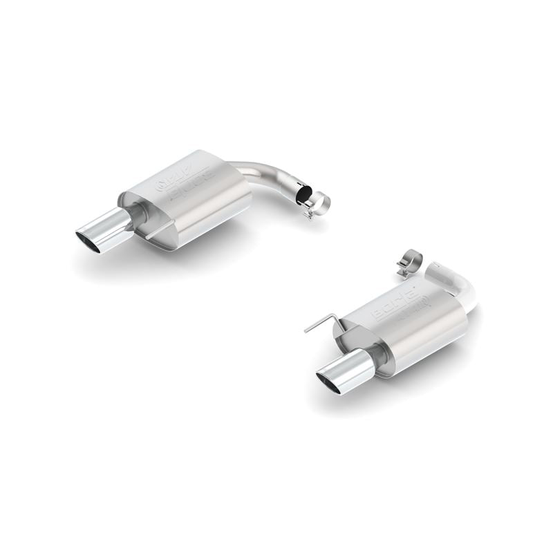 Borla Axle Back systems replace the factory rear mufflers and exhaust pipe with an improvement in overall sound & performance to your truck, SUV, or car. Welded tips are standard on most systems running gas or diesel fuels. Some of today's modern vehicles have a factory service-point in the exhaust system (flange or slip-fit) located in the exhaust tubing behind the vehicle rear axle. A Borla Axle Back performance exhaust system replaces the factory exhaust system (behind this service-point) following the same exhaust path and secured using the original vehicle hangers and rubber isolators.