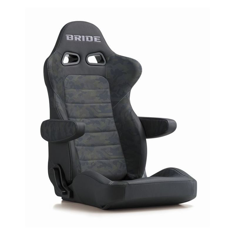 The seat fabric is made of PVC material that is resistant to water droplets, dirt, and scratches, making it highly convenient and maintainable for camping and other outdoor activities. The headrest is embroidered with the black BRIDE logo.