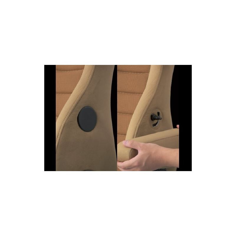 Also, the seat material is made of either a high-class faux suede fabric that prevents slippage or PVC (polyvinyl chloride) that is resistant to dirt and liquid. The suede is available in 7 colors, and the PVC comes in Tough Leather Black, for a total of eight possible color variations, making it possible to match with a variety of car interiors.