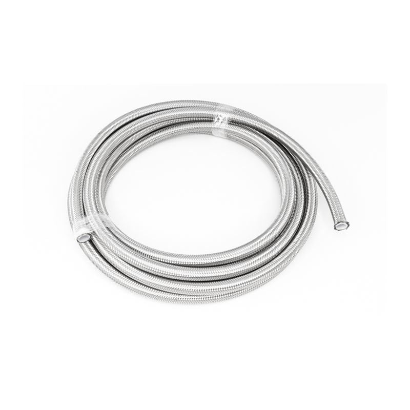 Deatschwerks 10AN SS Double Braided PTFE Hose, 20 feet (6-02-0863-20). DW Braided AN Fuel Lines are available in CPE and PTFE, both options are availabe in stainless (silver) or nylon (black) braded coverings. CPE rubber fuel lines are cord reinforced for high pressure and lined for compatibility with ethanol-based fuels up to e85. PTFE fuel lines have increased fuel compatibility for methanol and e100. In addition, The PTFE lines allows tighter radius bends, lower weight, and zero fuel vapor permeability. Swivel hose-end options for both CPE and PTFE in straight, 45, 90, and 180 degrees.