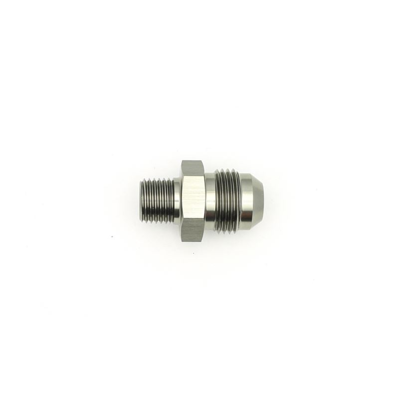 Deatschwerks 8AN Male Flare to 1/4-inch Male NPT Adapter (6-02-0904). AN to NPT Adaptors allow you to incorporate NPT accessories into an AN spec fuel system. Plumbing a fuel system has always been more difficult than it should be. Countless hours can be spent pouring through multiple vendor sites and hundreds of non-fuel-specific part numbers in search of that one specialty fitting you need. The DW plumbing line-up is designed to simplify this process by providing everything you need and nothing you don't. Available in -6 and -8 for 1/4, 3/8, and 1/2 NPT covers all the feed and return options needed for 200hp to 2,000hp