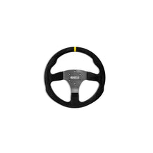 The Sparco R350 steering wheel has a unique anatomic grip with a yellow leather centering stripe designed to improve comfort and driving precision. The R350 has a varied grip diameter that provides a better feel. The R350 is available in suede or leather with black cross stitching for added durability.