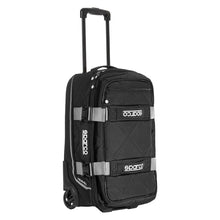 The Travel is the first Sparco rolling bag specifically designed as "Carry-on" size for air travel. The Travel is a stylish bag that features multiple internal pockets that with protective padding around the duffle bag and a reinforced under compartment. Two Harness straps keep contents inside. A telescoping handle make it easy to lift an roll. Available in 2 colors: black/red or black/silver.