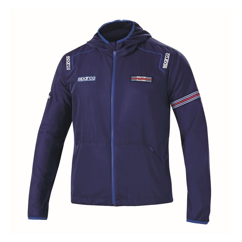 Introducing the Sparco Martini Windbreaker Jacket - a perfect blend of style, comfort, and practicality. Lightweight and soft, this jacket offers superior protection against wind and water. With its Martini Racing logos and stripes, it's a must-have piece for any racing enthusiast.