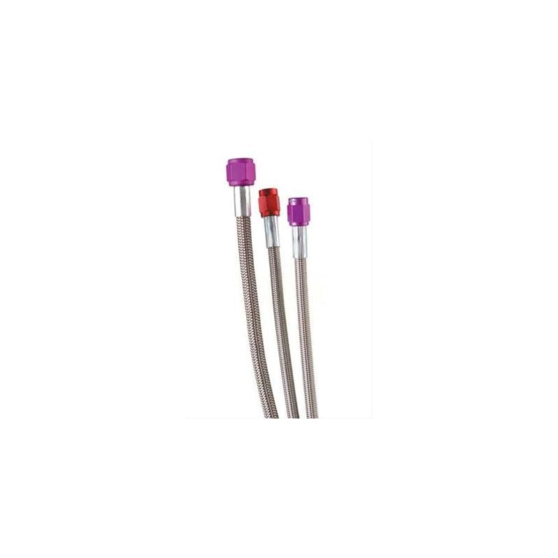 Teflon-lined hose assembles with stainlesss steel over-braid for strength and abrasion resistance. Hose assembles come with straight swivel ends in -3AN and -4AN sizes.