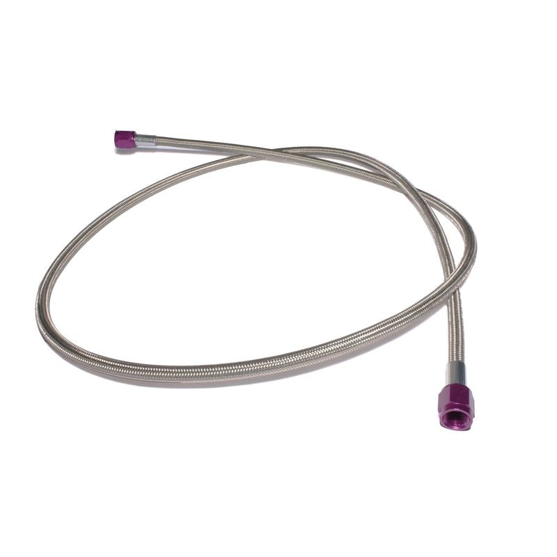 Teflon-lined hose assembles with stainlesss steel over-braid for strength and abrasion resistance. Hose assembles come with straight swivel ends in -3AN and -4AN sizes.