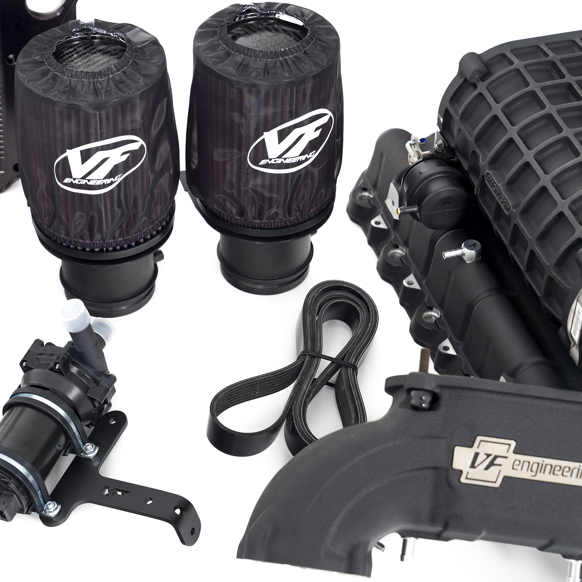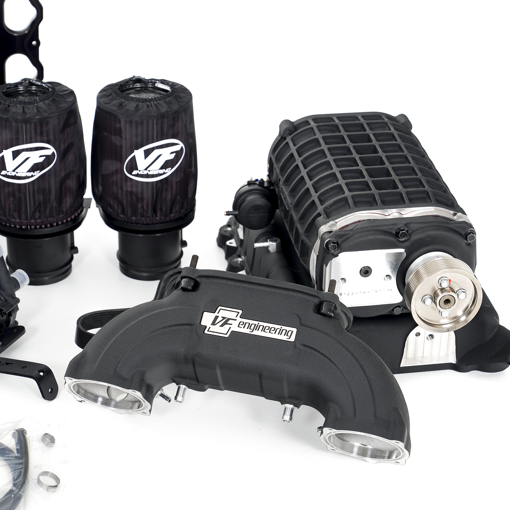 Elevate your 2016+ Audi R8 to unprecedented performance levels with the VF Engineering VF8XX Supercharger System. This meticulously engineered system delivers a remarkable increase in horsepower and torque through a transforming your R8 into a powerhouse for both canyon drives and track days. Crafted with precision, the VF8XX features a 6th generation Magnusm TVS2300 Roots style blower that_x0019_s affixed to a sophisticated air-to-water intercooler for optimal cooling efficiency, ensuring consistent performance even under demanding conditions. Installation is straightforward with a plug-and-play design, allowing you to enhance your R8's capabilities quickly and efficiently. Whether you're navigating the twists and turns of canyon roads or pushing the limits on the racetrack, the VF8XX provides smooth, responsive throttle control and exceptional driveability. The system_x0019_s design integrates seamlessly into your vehicle, maintaining the aesthetics of your engine bay while boosting performance. Experience the thrill of enhanced power as you carve through canyons with precision or accelerate down the straightaways of your favorite track. The VF8XX not only improves performance but also embodies VF Engineering's commitment to both form and function. With their legacy of innovation and quality, VF Engineering has developed the VF8XX to meet the highest standards, ensuring a powerful and exhilarating driving experience. Unlock the true potential of your Audi R8 with the VF Engineering VF8XX Supercharger System, and enjoy the ultimate blend of performance and reliability on every journey.