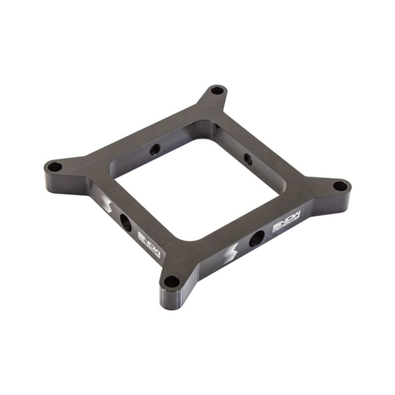 1" thick adapter plates allow for a clean and easy install of any Snow Performance nozzles on carbureted applications using a Holley, Edlebrock, or Carter 4150 Carburetor. Comes with necessary gaskets/studs needed for install. (Machined with (2) 1/8" NPT ports) Warning! When using a injection plate a solenoid upgrade part# 40060 must be used to prevent vacuum siphoning.