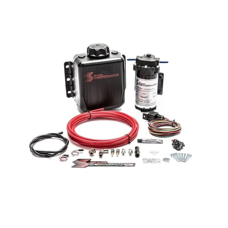 Kit Contents: 300 PSI UHO Pump, 3Qt Tank, Adjustable Boost Pressure Switch/Relay, 20 AMP Fuse, (20') Red High Temp Nylon Tubing, Boost Line/Required Hardware, Required Quick-Connect Fittings, SP Decal, LED Alert System, Dual Nozzle Upgrade, Snow Performance Hypersonic-Water-Meth Nozzles/High Flow Check Valve