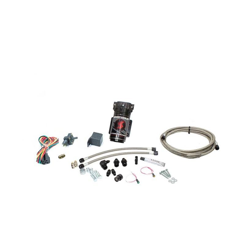 Race gas quality fuel on pump gas! Increase your pump gas octane by 25 points and make more power efficiently with a cooler running motor! The Snow Performance Stage 1 Boost Cooler water-methanol injection kit is available for all forced induction applications (supercharged/turbocharged) and uses a adjustable boost switch to inject a fixed amount of water-methanol into the system until boost goes below the switch set point. Proven to deliver 30-70 HP increases to all forced induction applications! This makes it a good choice for low to medium boost setups (1-15 PSI) and vehicles with a positive displacement supercharger looking for an octane enhancement and cooler intake charge. Activation can also be set up through any other user-chosen switch, such as a full throttle switch, nitrous switch, etc. Comes with 4AN fittings and stainless steel braided line to mount pump/tank in engine bay of vehicle. For trunk mount options see Part# SNO-40014-BRD, SNO-40012-BRD.