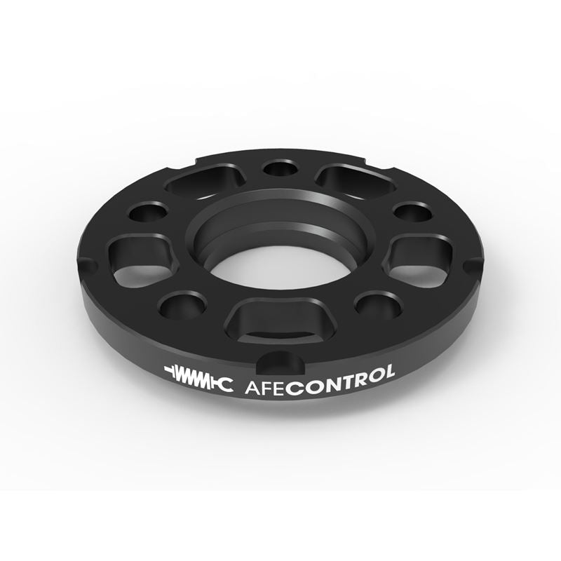 aFe CONTROL wheel spacers are a great way to improve the aesthetics, functionality, and wheel fitment of your vehicle. By effectively lowering the offset of your factory or aftermarket wheels, our spacers allow you to dial in a more aggressive fitment and provide clearance for other components such as brakes and suspension. The resulting increase in track width also improves handling and stability. All our spacers are designed in-house and machined to strict tolerances to ensure a perfect fit and long-lasting durability. Our hub-centric spacer design allows the wheels to be centered with the hub allowing for wheel loads to be transferred to the hub for a stronger platform and eliminating any chance of vibration. Spacers can sometimes stick to the factory hubs due to corrosion, debris, and heat buildup.?This can make it difficult if you ever need to remove the spacer.?The added pry pockets provide a space to safely pry your spacers off and avoid damage to your hub and spacer.