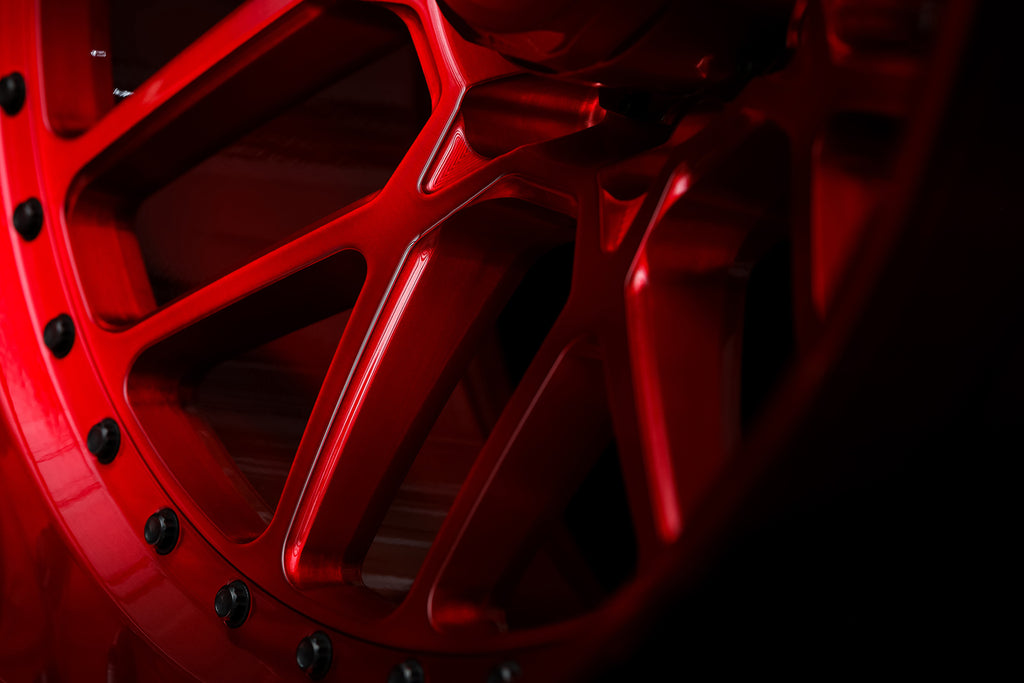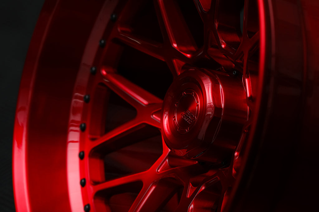 We offer a number of matte, gloss and brushed translucent powdercoated finishes. All monoblock wheels can be finished in (1) single finish. All 2pc modular wheels can be finished in (1) single center finish and (1) single lip/barrel finish. Our polished finish is only offered on lips and if lips are polished, barrels will be brushed clear by default, or gloss black. All 2pc modular wheels will utilize assembly hardware that will be hidden or exposed and can be finished in one of four finishes, stainless, black, gold or titanium.