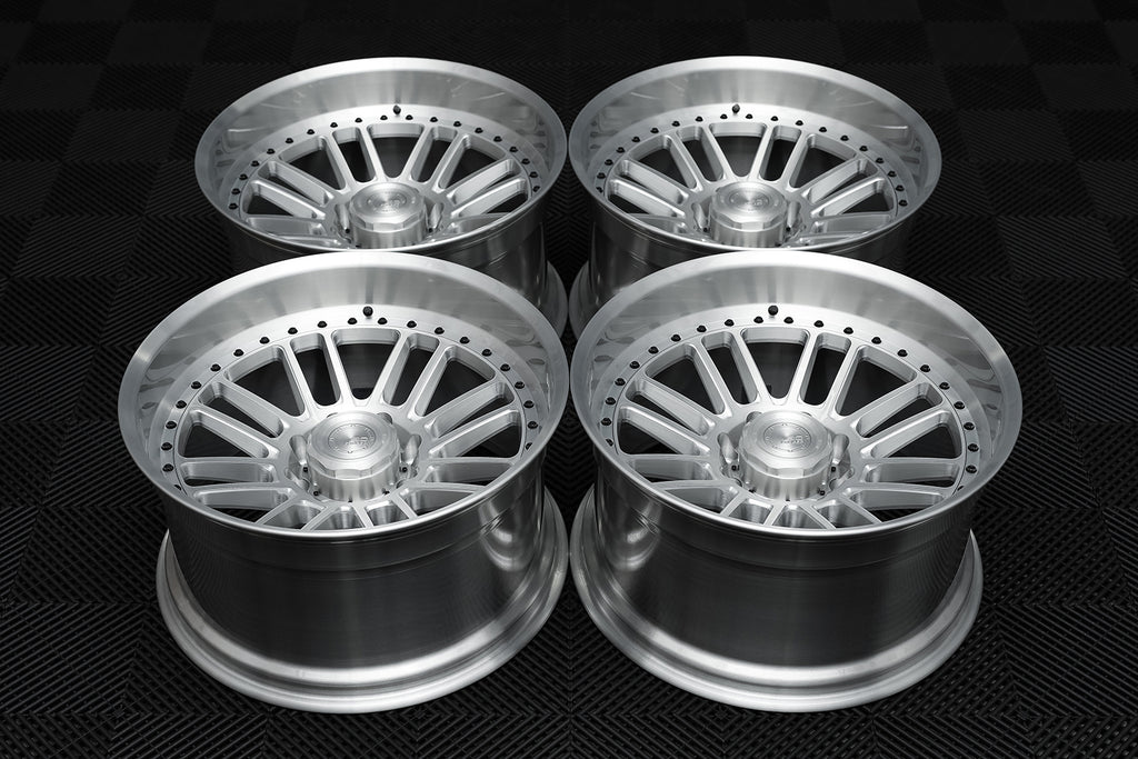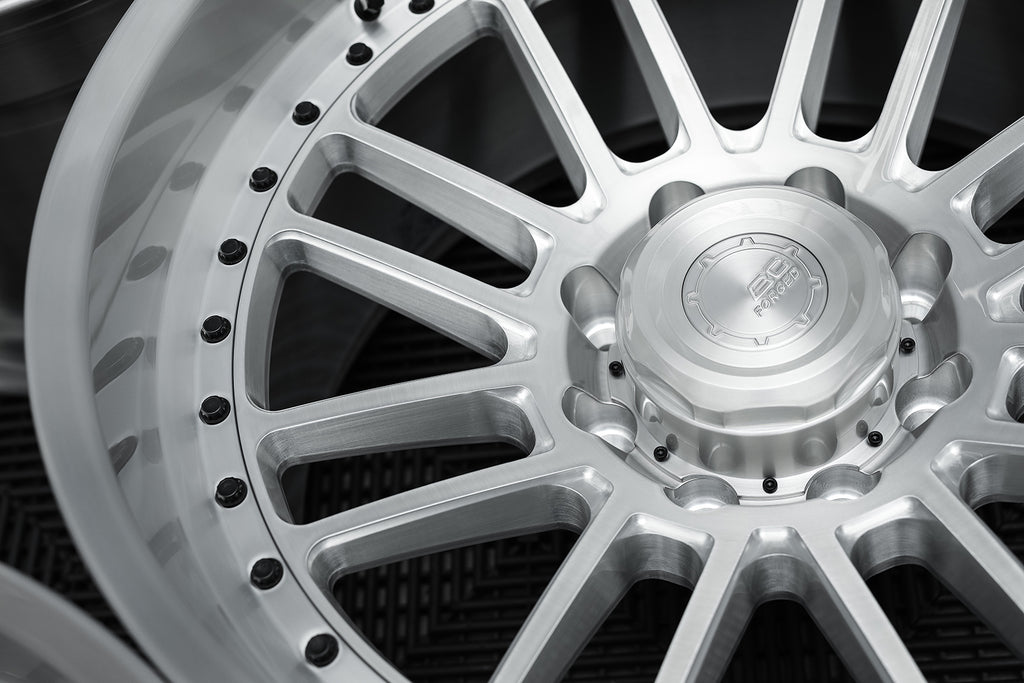 The difference between a BC Forged monoblock wheel and a BC Forged modular wheel is the construction. A BC Forged monoblock wheel is a single piece of 6061-T6 aluminum whereas a BC Forged modular wheel is comprised of two pieces of 6061-T6 aluminum, the first being a center and the second being a lip/barrel. With all BC Forged modular wheels, the center piece is fastened to a flange located on the lip/barrel with stainless steel assembly hardware, which we offer in four different finishes. LE/MLE series (non-extended spoke) designs are only offered with exposed hardware whereas all HCA, HCS, HC, HB, HBR and HT series (extended spoke) designs are all offered with hidden hardware with most also being offered with exposed hardware.
