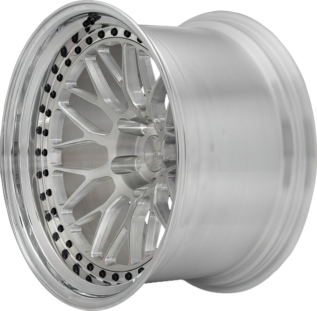 The difference between a BC Forged monoblock wheel and a BC Forged modular wheel is the construction. A BC Forged monoblock wheel is a single piece of 6061-T6 aluminum whereas a BC Forged modular wheel is comprised of two pieces of 6061-T6 aluminum, the first being a center and the second being a lip/barrel. With all BC Forged modular wheels, the center piece is fastened to a flange located on the lip/barrel with stainless steel assembly hardware, which we offer in four different finishes. LE/MLE series (non-extended spoke) designs are only offered with exposed hardware whereas all HCA, HCS, HC, HB, HBR and HT series (extended spoke) designs are all offered with hidden hardware with most also being offered with exposed hardware.