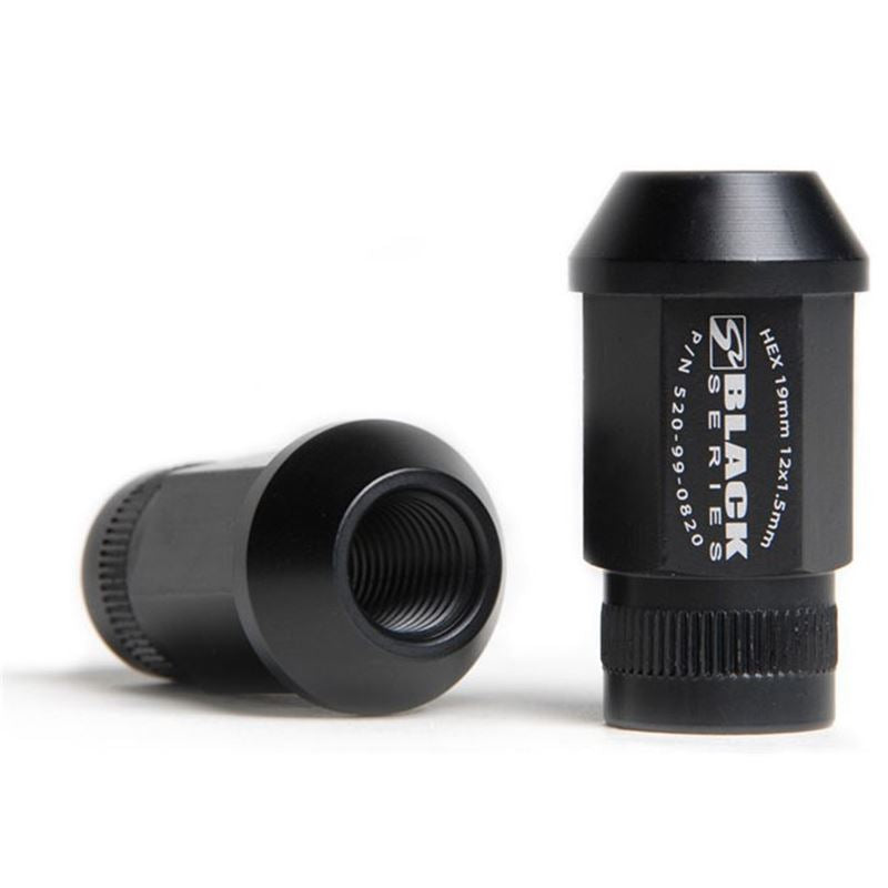 Forged 7075 Aluminum 12mm x 1.50 Open End Lug Nut w/60deg. Seat-Compatible w/Extended Studs-Black Anodized. Forged from ultra-strong 7075 aluminum, Skunk2's Black Series Lug Nuts for most Hondas and Acuras, Mitsubishis, Scions, and Toyotas feature knurled ends for maximum grip, hard anodizing for superior corrosion resistance, and an attractive black finish. Skunk2's lightweight Lug Nuts have also been proven on the race track for nearly a decade so you can be assured of both quality and longevity. Weighing in at a lightweight, industry-leading 23.5g, Skunk2 Lug Nuts help reduce unsprung weight but without compromising strength. Each lug nut also features a perfectly tapered end for maximum wheel-to-lug contact as well as durable threads for added longevity.