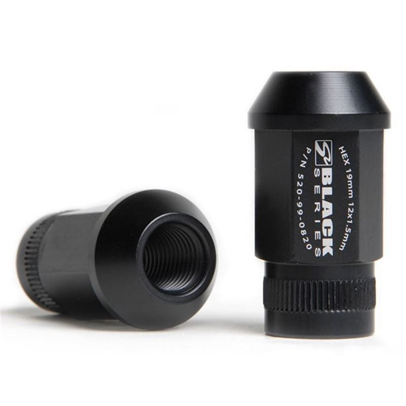 Forged 7075 Aluminum 12mm x 1.50 Open End Lug Nut w/60deg. Seat-Compatible w/Extended Studs-Black Anodized. Forged from ultra-strong 7075 aluminum, Skunk2's Black Series Lug Nuts for most Hondas and Acuras, Mitsubishis, Scions, and Toyotas feature knurled ends for maximum grip, hard anodizing for superior corrosion resistance, and an attractive black finish. Skunk2's lightweight Lug Nuts have also been proven on the race track for nearly a decade so you can be assured of both quality and longevity. Weighing in at a lightweight, industry-leading 23.5g, Skunk2 Lug Nuts help reduce unsprung weight but without compromising strength. Each lug nut also features a perfectly tapered end for maximum wheel-to-lug contact as well as durable threads for added longevity.
