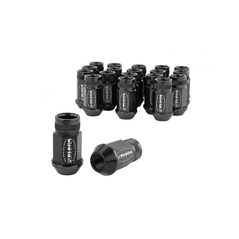 Forged from ultra-strong 7075 aluminum, Skunk2's Black Anodized Series Lug Nuts would fit most applications that utilize the M12 x 1.25 thread pitch i.e. Honda and Acura. Skunk2 Forged Lug Nuts feature knurled ends for maximum grip, black anodizing for superior corrosion resistance and are extremely lightweight. Skunk2 Lug Nuts have also been proven on the race track for over a decade so you can be assured of both quality and longevity. Industry-leading 23.5g each Skunk2 Lug Nut helps reduce unsprung weight but without compromising strength. Each lug nut also features a perfectly tapered end for maximum wheel-to-lug contact as well as durable threads for added longevity.