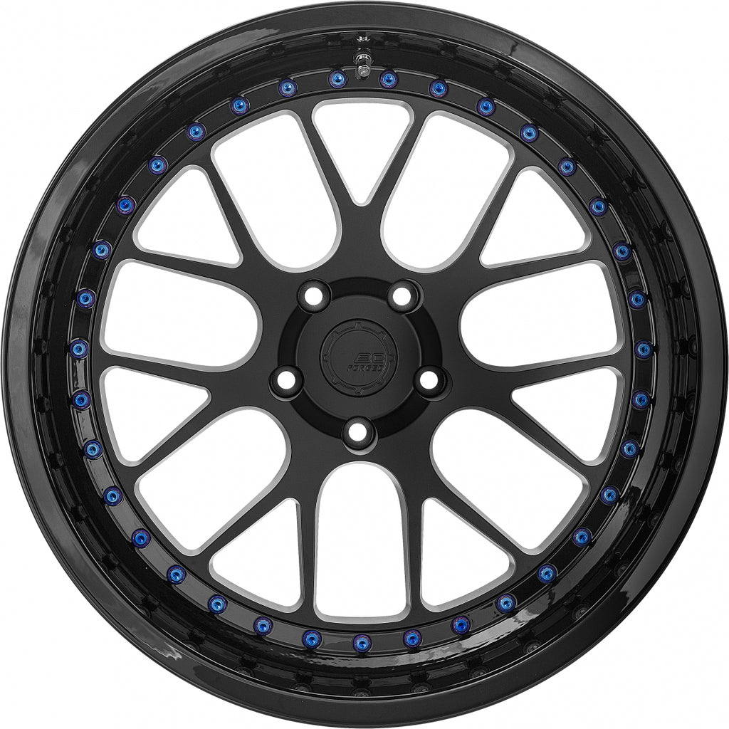 The difference between a BC Forged monoblock wheel and a BC Forged modular wheel is the construction. A BC Forged monoblock wheel is a single piece of 6061-T6 aluminum whereas a BC Forged modular wheel is comprised of two pieces of 6061-T6 aluminum, the first being a center and the second being a lip/barrel. With all BC Forged modular wheels, the center piece is fastened to a flange located on the lip/barrel with stainless steel assembly hardware, which we offer in four different finishes. LE/MLE series (non-extended spoke) designs are only offered with exposed hardware whereas all HCA, HCS, HC, HB, HBR and HT series (extended spoke) designs are all offered with hidden hardware with most also being offered with exposed hardware.