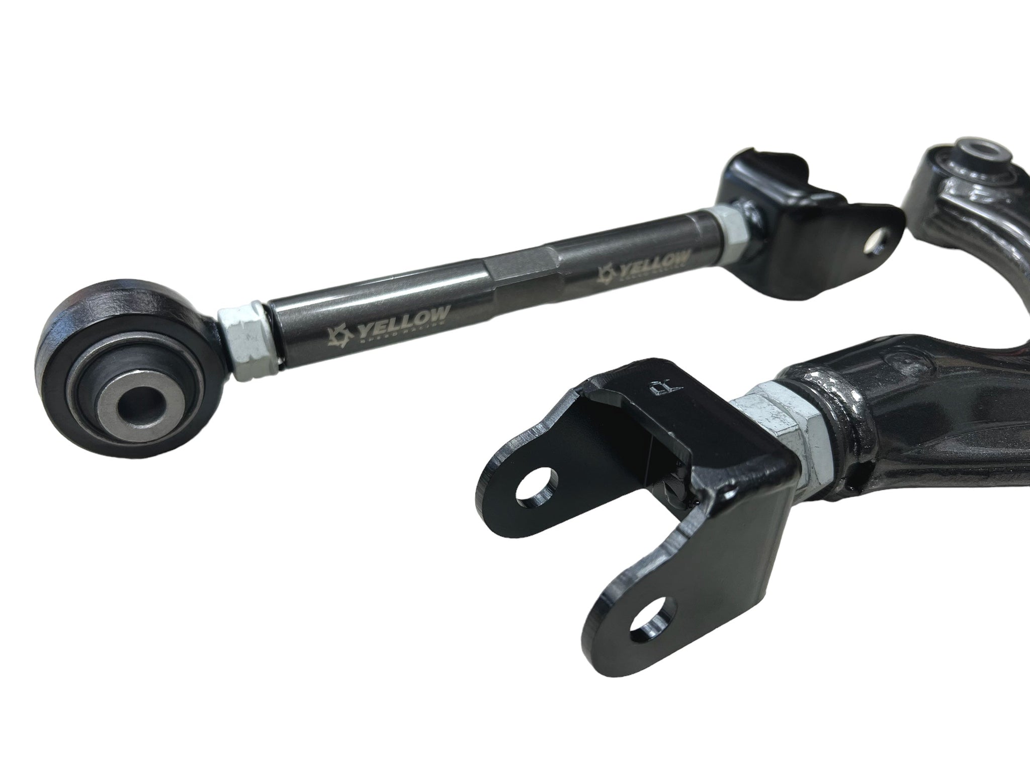 The Yellow Speed Racing Toyota Camry XV70 rear camber kit & toe arm bundle reduces tire wear and increase tire performance. YSR adjustable arms are equipped with superior quality bushings, providing improved stability and accurate steering response, especially during high speed driving and cornering.