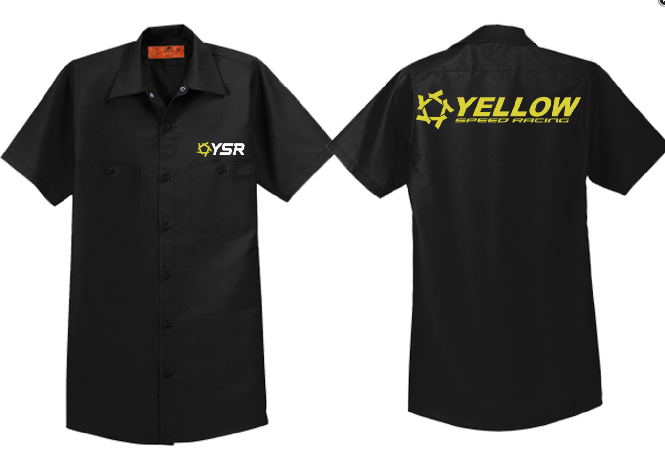 Introducing our new Red Kap (SP24) Industrial Button Up Pit Crew Shirt! This shirt is exceptionally comfortable and sports our modern era YSR logo in front, and our classis Yellow Speed Racing logo on the rear.