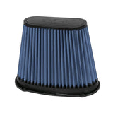 Magnum Flow Pro 5R Round Tapered Blue Air Filter by aFe. Constructed with 100% polyurethane on top and bottom, this high flow, oiled OE replacement performance filter will outflow stock paper filter for improved horsepower and torque. Five layers of progressively finer mesh cotton gauze media provide maximum airflow for best performance results. Washable and reusable for multiple cleaning cycles, the tall open evenly spaced pleats provide excellent dust holding capacity for longer service cycle between cleanings. Integrated urethane bump seal insures tight, no leak seal over the life of the filter.