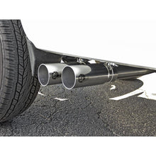 Rebel Series 409 SS Cat-Back Exhaust System with Dual Side Exit (49-44062-P) by aFe. Exhaust System Type: Cat-Back. Exhaust Tubing Material: 409 SS. Main Tubing Diameter: 3" to 2.5". Exhaust System Sound: Aggressive / Loud. aFe power introduces an all new Rebel Series exhaust system. This Rebel Series cat-back is designed with dual intercooled exhaust tips that exit in front of the rear passenger tire for a unique, aggressive look.