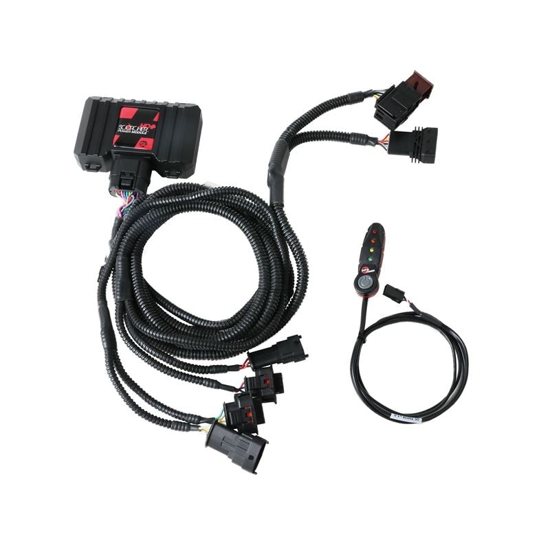 The aFe POWER Scorcher HD PLUS is a plug and play power module that is a simple upgrade providing instant performance gains and enhanced drivability at the press of a button. Combining the advantages of our Scorcher power modules with a built-in throttle enhancer, the Scorcher HD PLUS is your ticket to a finely tuned driving experience. With this all-in-one unit, your performance gains won?t be dulled by a lazy throttle pedal that all newer vehicles are plagued with from the factory due to the drive-by-wire system. Equipped with four distinct power settings, each paired with a corresponding throttle configuration, the Scorcher HD PLUS Power Module gives you the ability to fine tune your vehicle's performance. Whether you're cruising in Sport Mode or tapping into your vehicle's full potential in Race Mode, the in-cabin switch offers seamless control, making your vehicle's performance truly tailored to the driving conditions and your driving style. Utilizing OE-style connectors, the Scorcher HD Plus offers plug-and-play installation by simply plugging into your vehicles? corresponding sensors and gas pedal. The installation does not require splicing wires or any modification of the vehicle's electrical system, keeping all factory connections intact. Installation can be easily reversed in minutes should the module need to be removed. The included LED controller mounts in the cabin for easy on-the-fly selection of the four distinct power settings and their corresponding throttle configuration Stock (Green), Sport (Yellow), Sport+ (Orange), Race (Red). aFe SCORCHER HD PLUS modules uses a high quality enclosed casing and factory style connectors which requires no modification to your factory harness. These factory style connectors plug directly into the stock wiring harness connectors and sensors.
