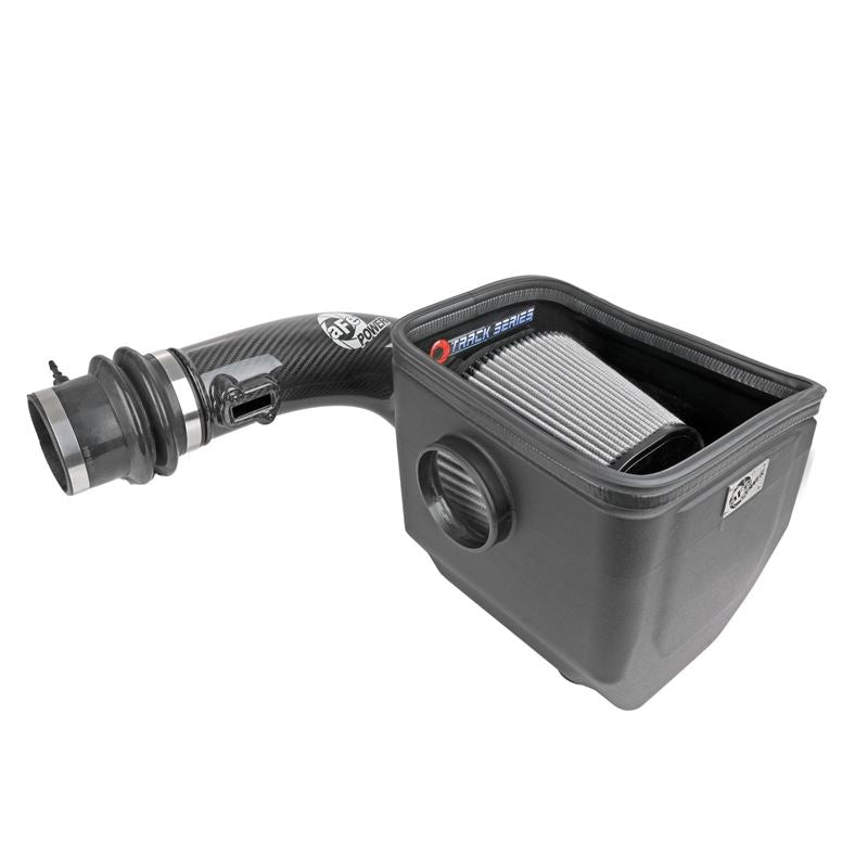 This 7" tall 360-degree radial flow air filter features a 5" flange and our oil-free Pro DRY S media with three layers of synthetic media for maximum convenience. Its progressive layering provides great filtration efficiency and dust holding capacity, while not requiring the use of oils. Its inverted top makes for more filter surface area, resulting in longer service intervals. This media is best suited for street use. This kit includes a Magnum SHIELD Pre-Filter to protect your performance air filter from large debris and water splash. The included massive air filter is surrounded by an open-element XLPE (cross-linked polyethylene) polymer housing that minimizes warm engine air for maximum performance. Its open design allows for easy viewing of the air filter and delivers an aggressive Air Intake sound. It connects to the vehicle's factory air inlet with no additional hardware. The lightweight tube is computer-designed to achieve maximum power gains while maintaining a perfect fit. Manufactured from 100% twill weave carbon fiber, it features zero fiberglass and is clear-coated for the highest quality construction. This kit has a 53% weight reduction compared to the OEM intake. Stainless-steel clamps are included for strength, and premium silicone couplings allow for ample flexibility. Track Series intakes are designed with fewer parts for a fast and easy installation.