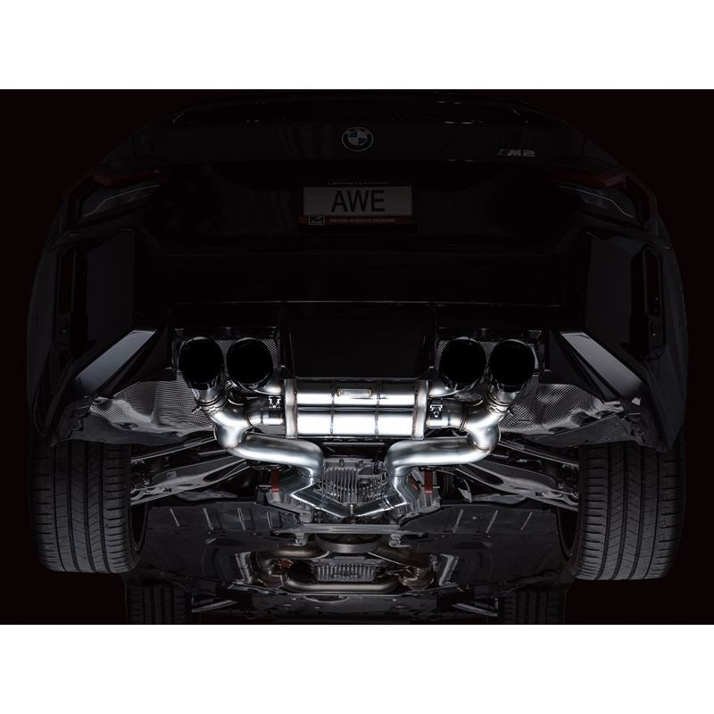 The AWE SwitchPath™ Exhaust is comprised of 3-inch U.S.-sourced T304L stainless steel, a precision x-pipe, and a valved SwitchPath™ muffler tuned for the S58. Beginning after the factory mid pipe, the precision X-pipe immediately cures the S58 of its rasp, deepening the tone before it's refined further by the bespoke SwitchPath™ muffler. When the valves are closed, the SwitchPath™ produces a refined, aggressive howl while remaining full-bodied and powerful - no congested, metallic sounds when you're on it. At cruising, interior acoustics are close to stock with no drone. AWE SwitchPath™ tech responds perfectly to the many transmission settings and shift points of the G87. Drop the hammer with the valves closed and SwitchPath™ sings a proper M anthem. If you were to leave the valves closed at all times after equipping SwitchPath™, we wouldn't blame you - it's that good? all of the time. Open the valves and the S58's roar is uncorked. Sport and Sport+ modes achieve the ultimate contrast in behavior when compared to comfort driving modes (aka valves closed). In Sport mode, the exhaust note is powerful, clean, and aggressive. In Sport+ mode, the same aggression applies? but with grin-provoking burbles. Thanks to the precision X-pipe, the rasp is still kept in check while allowing the exhaust note to reach full aggression. The AWE SwitchPath™ comes with quad 4.5" double-walled, slash-cut tips available in chrome silver or diamond black. The exhaust also features inlet adapters to mate to the factory mid-section. When pairing AWE Mid-Pipes to the SwitchPath™ or Track Edition Exhausts, these adapters are not needed. Due to varying cut points, AWE Exhausts are not guaranteed to mate with another manufacturer's mid pipes. AWE's No CEL Guarantee, Perfect Fitment Guarantee, and Lifetime Warranty come standard.