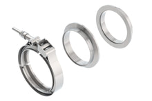 Made from T-304 Stainless steel. V-Band clamps work well in stressful, vibration, and extreme temperature conditions. Allow for a gasket free seal, and quick disassembly. Feature a male/ female design to ensure proper alignment of flanges inside of clamp. Natural Mill finish. Can be brushed or polished prior to installation. Contains 1 male flange, 1 female flange, 1 clamp.