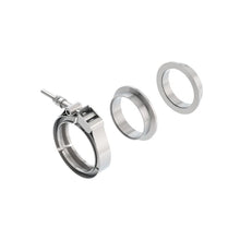 Made from T-304 Stainless steel. V-Band clamps work well in stressful, vibration, and extreme temperature conditions. Allow for a gasket free seal, and quick disassembly. Feature a male/ female design to ensure proper alignment of flanges inside of clamp. Natural Mill finish. Can be brushed or polished prior to installation. Contains 1 male flange, 1 female flange, 1 clamp.