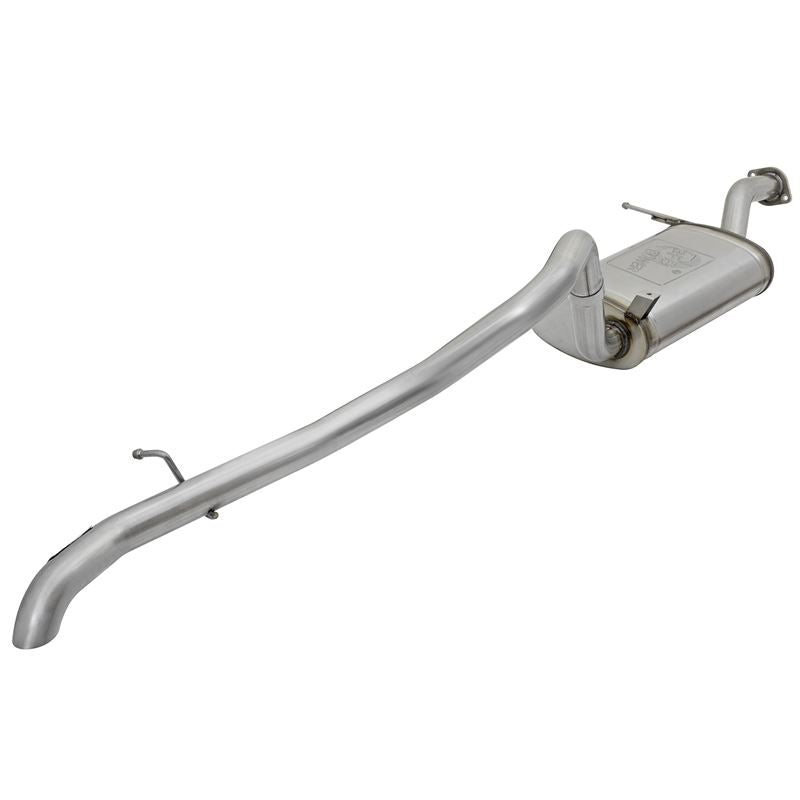 MACH Force-Xp 2-1/2 IN 409 Stainless Steel Cat-Back Hi-Tuck Exhaust System.This MACH Force-Xp Cat-Back exhaust system is constructed of 2-1/2" mandrel-bent stainless steel tubing and comes complete with free-flowing muffler, OE style bayonet hangers, band clamps and necessary hardware for a hassle-free installation. The smooth curves and increased diameter of this exhaust system helps remove restriction and keeps exhaust gas flowing smoothly for increased horsepower and torque. This system produced +11 horsepower and +22 lbs. x ft. of torque over the stock exhaust system verified by our in house dyno. (*Dyno results from 49-36115-B/P) of torque over the stock exhaust system verified by our in house dyno. Hi-Tuck: This exhaust system is finished off with a Hi-Tuck that is developed to give you extra clearance during extreme angle climbs or descents. Installation is a Snap: This MACH Force-Xp uses all factory mounting locations providing stability and a hassle-free installation. Leak-Free Seal: High quality OE-style flange and premium band clamps are used for a complete 360-degree sealing surface eliminating leak paths. Aggressive Sound: A free-flowing stainless steel 22" length muffler is used to absorb high pitch tones producing a powerful sound and unleashing all available horsepower and torque. Perfect Fit: OE-style bayonet hangers are used to maintain a stable pipe location during high vibration and high heat conditions. The bayonet tip holds the hanger bushing in place for an OE-style fit that does not change with time. Emissions Disclaimer: This product does not require a CARB EO# (Vehicle does not exist in U.S.). All aFe exhaust systems are engineered and manufactured in our Corona, California facility.