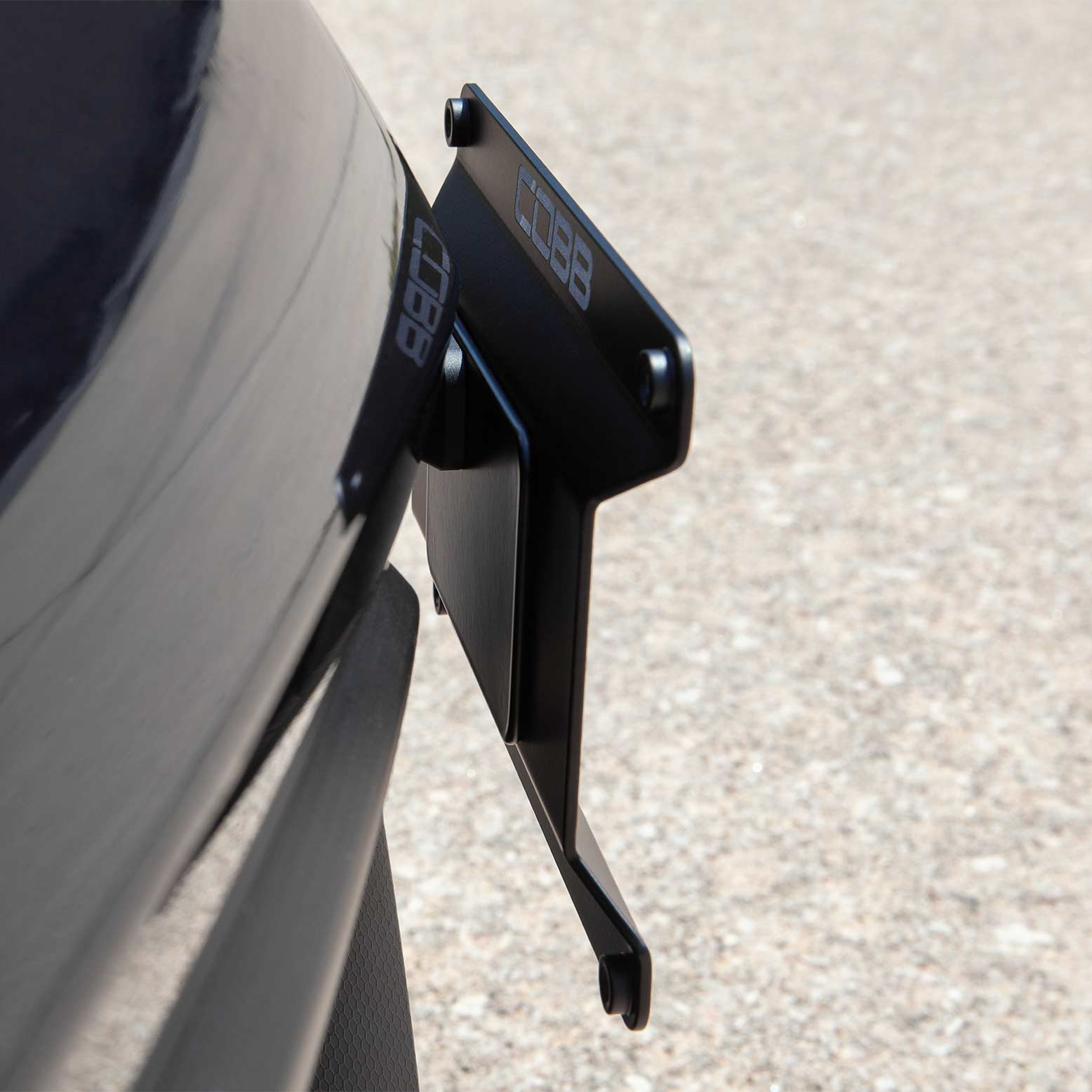 The COBB License Plate Mount utilizes your car's factory tow hook location as base. No drilling or cutting is required. The backing plate allows for multiple mounting orientations for maximum adjustability. High quality hardware keeps everything in place for the life of your car. License plates are, in many cases, a requirement to be placed on the front of your vehicle. Rather than adding holes to your bumper cover and/or blocking the cooling stack of your car, use the COBB License Plate Mount.