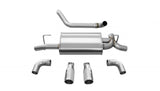 High Tuck Exhaust System Maximizes Ground Clearance 16 Gauge Stainless Steel Pipes and Thick Muffler Cases With Solid Hangers Ensure Rugged Durability While Off-Road Modular system allows for maximum customization for driving style and sound level. Features CORSA's Patented No Drone, Reflective Sound Cancellation (RSC) Technology Custom Tuned, Exhaust Note Is aggressive under acceleration and quiet at cruise No Drone At Cruise Flows Better Than Stock 10 Year Limited Warranty. Detailed Printed Instructions Included, Full-Color Available Online No Welding Required Made in the U.S.A.