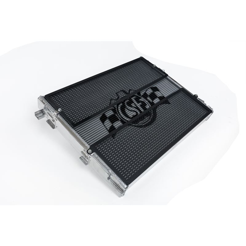 While in stock form, the G8X's factory cooling system does a decent job keeping up with the cooling demands. While this was true of the car in factory spec, those results changed when the cars were modified and started pushing more power. As with most performance vehicles, power adders were some of the first products to be released for the new G8X platform. Bolt-on upgrades, software tunes, and upgraded turbos are all great for speed, but start to create heat issues. Any time you add power to your car, you naturally increase the amount of heat the engine produces.; The CSF Heat Exchanger features a 2-Row (vs OEM single row) Core that is 42mm thick with CSF's Exclusive B-Tube Technology. Increasing the size of the core and end tanks adds to the overall volume of the system which helps absorb more heat. The more efficient core not only helps dissipate more heat from the system, but also provides better airflow into the radiator that sits behind the heat exchanger. For vehicles equipped with the ZF8 Automatic Transmission, the heat exchanger core specifications were design concurrently with CSF's new Race-Spec Dual Core Transmission Oil Cooler (CSF #8221). The two included Black Rock Guards offer full protection for the heat exchanger (above and below the crash bar), especially when paired with aftermarket "open face" race style grilles. These grilles have become quite popular for performance and aesthetics, and keeping your heat exchanger safe from debris is very important. With well over 100 track hours worth of testing and thousands of miles on the road, you can be assured that the CSF's new High-Performance Front Mount Heat Exchanger has been thoroughly tested and vetted.