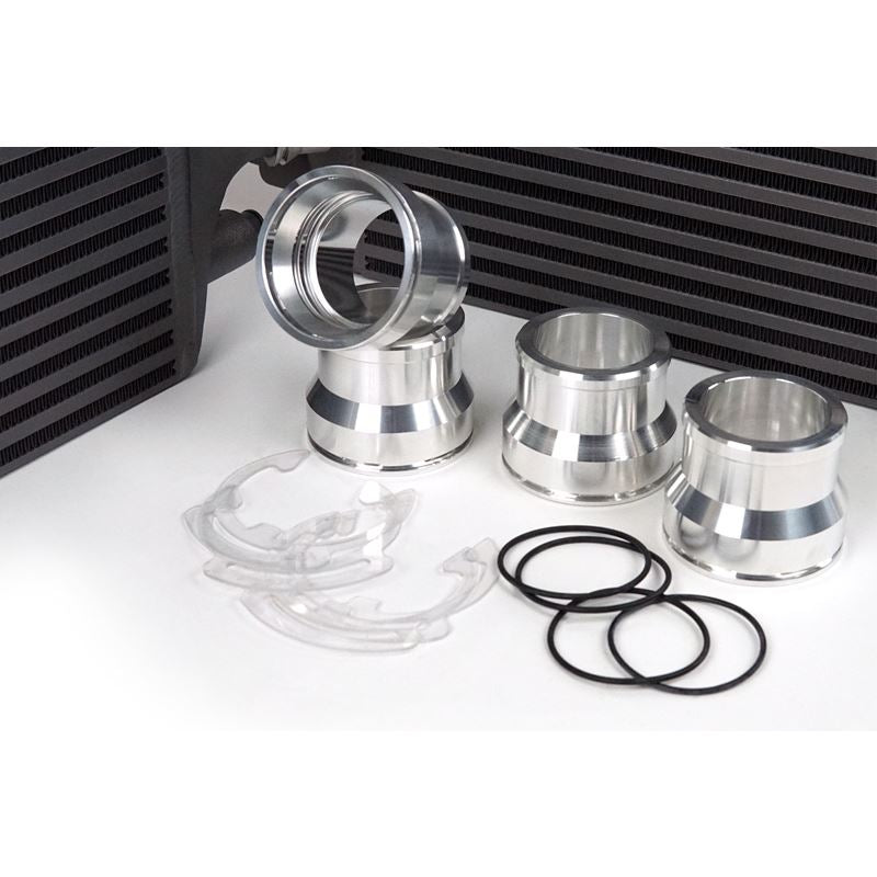 Porsche 991 911 Turbo / Turbo S Intercooler Fitting Adapters (OEM to Slip-On). Porsche 991 Turbo Adapter Fittings allow you to use aftermarket slip on style charge pipes with the CSF High Performance Intercoolers (CSF #8112)