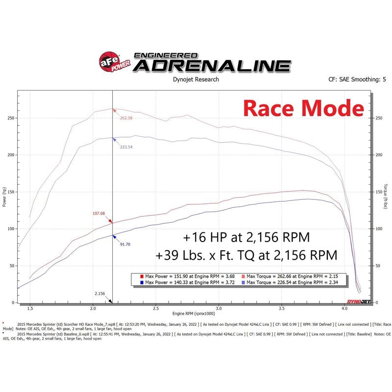 SCORCHER HD Power Module.A simple 30 minute install will give you an increase in power. The aFe POWER SCORCHER HD Module includes a high quality case & wire harness with factory style connectors for an easy plug & play installation. A LED light switch provides In-Cabin On-The-Fly power adjustments. The 4-Power settings are adjustable with one button and the LED light represent the settings: Stock (Green), Sport (Yellow), Sport+ (Orange) and Race (Red) . This performance module improves vehicle performance and vehicle response by increasing fuel pressure. This quick and easy plug & play SCORCHER HD module adds significant power by increasing fuel pressure to improve vehicle efficiency, power and throttle response. SCORCHER HD modules features In-Cabin On-the-Fly power adjustment to accommodate any situation. This adjustment is controlled by via LED light switch with a button that can be easily mounted in any location in the cabin. aFe SCORCHER HD modules uses high quality aluminum extrusion black powder-coated enclosure casing and factory style connectors which requires no modification to your factory harness. These factory style connectors, plugs directly into the stock wiring harness connectors and sensors. SCORCHER HD modules are 100% tested for proper protection. These modules work amazingly on stock vehicles and are optimized for maximum performance with use of aFe POWER performance products.