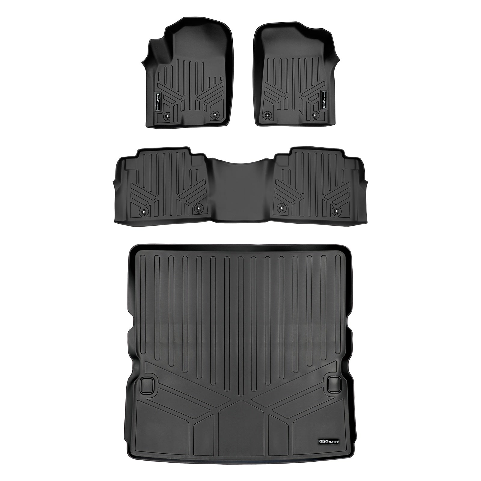 SMARTLINER Floor Mats 2 Rows and Cargo Liner Behind 2nd Row Set Black Compatible With 17-18 Armada / 11-13 Infiniti QX56 / 2014-2018 QX80 (SA0242/B0242/D0242)