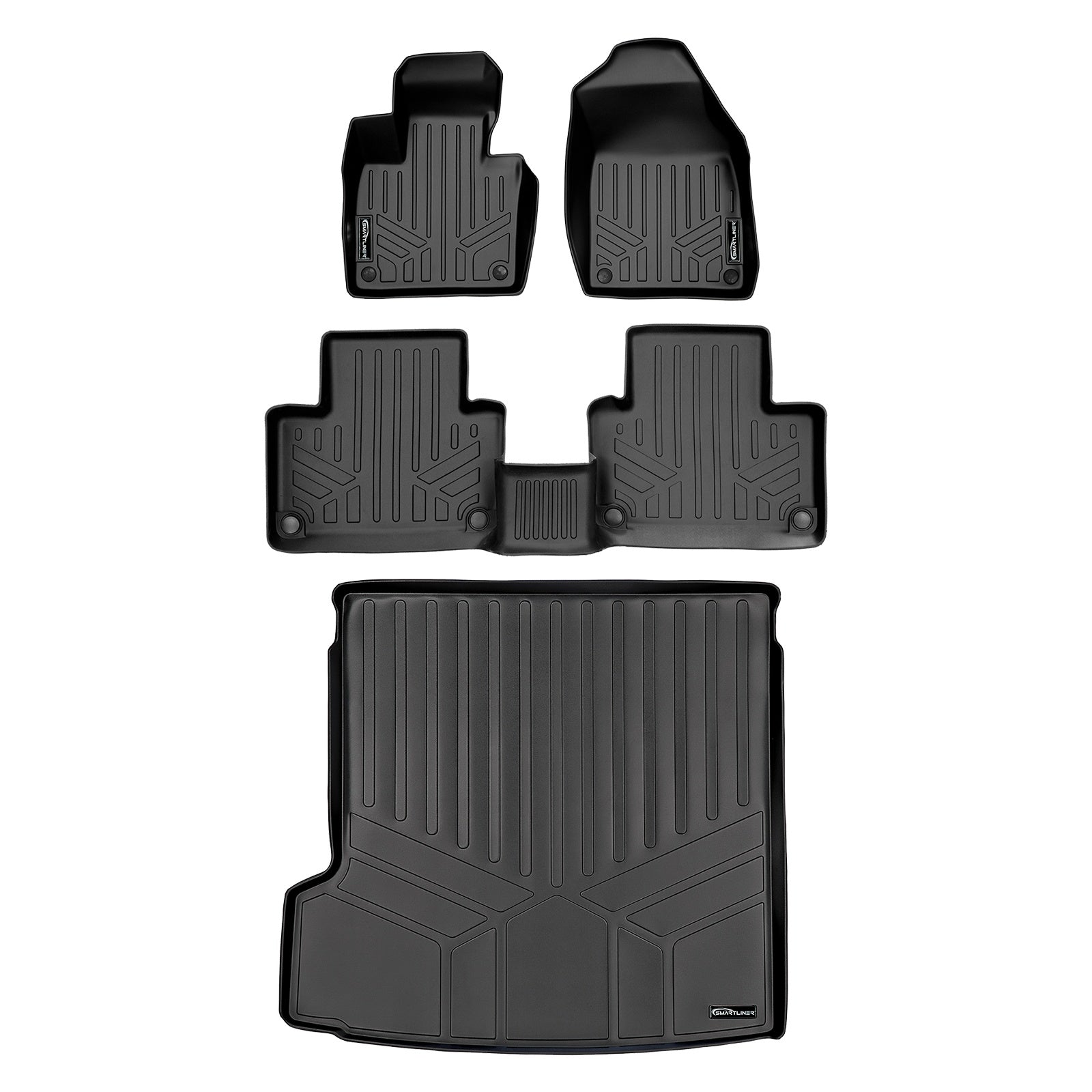 SMARTLINER Floor Mats 2 Rows and Cargo Liner Behind 2nd Row Set Black Compatible With 2016-2023 Volvo XC90 (SA0223/B0611/D0223)