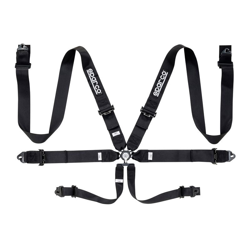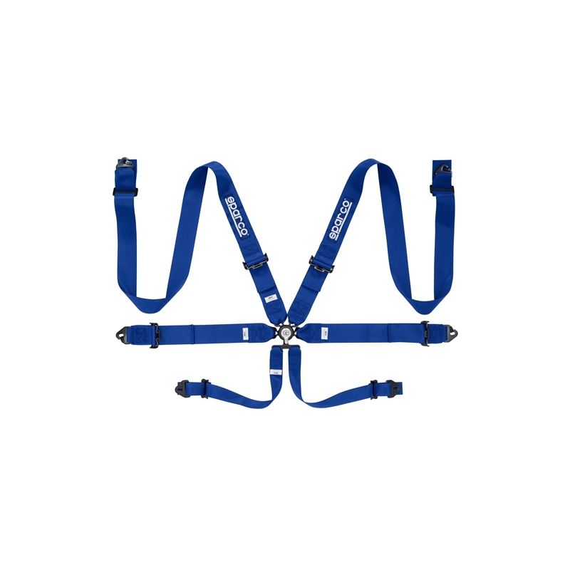 Sparco’s full line of harnesses works in unity with our competition seats. Crafted from high-quality fabric and fitted with durable fasteners, each harness restrains the body for added safety and protection. Our 6-point harness features 3-inch lap and shoulder straps that attach in the center using an aircraft-quality quick-release buckle with integrated anti-submarine belts. The lightweight steel adjusters allow for smooth, quick adjustments and perfect clamping. Each belt attaches to the frame using snap-on fixings. Available in pull up and in three colors: black, blue and red.